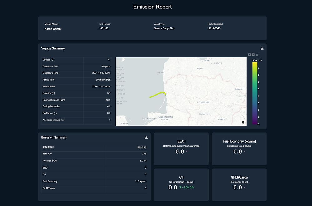 When used together, Emission Report and Trip Log form a powerful combination. While Trip Log provides the operational foundation — a detailed log of where vessels have been and what they’ve done — Emission Report transforms that validated data into structured insights for sustainability performance and compliance.