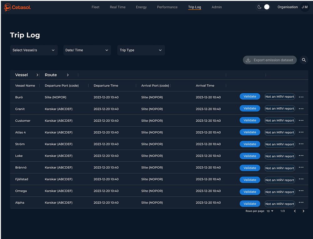 Cetasol is a Gothenburg-based deep tech/green tech company that develops intelligent solutions to support and accelerate maritime sustainability. The core product, iHelm, is an optimization tool for entire fleets that automatically models operations to save money and fuel while providing deeper insights. This is done by equipping fleet managers and operators with the tools they need to make informed, data-driven decisions — in real-time and in retrospective analysis. Cetasol is now launching two new features to their iHelm solution: Emission Report 2.0 and Trip Log. These additions are designed to bring further clarity, traceability, and operational control to your fleet’s data.