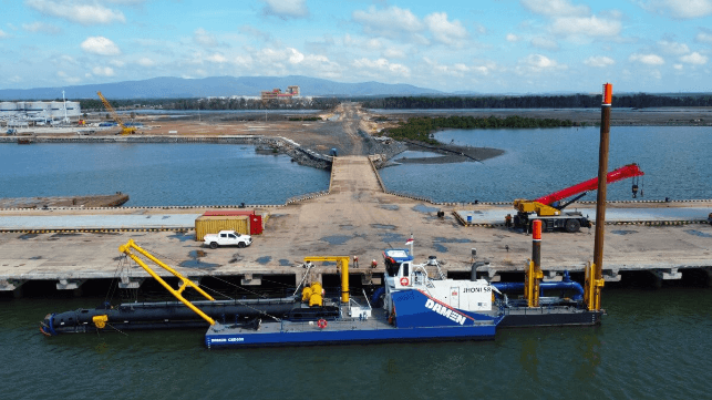 The dredging operation is located at the Port of Batulicin on the island of Kalimantan. The main activities of the port relate to its important coal terminal. The busy access channel is used by numerous coal barge transports. Due to continuous sedimentation of this channel, the CSD600 is required to maintain the navigational depth. The newly designed high efficiency dredge pump removes this sediment and pumps it to a spoil field some 500 metres away.