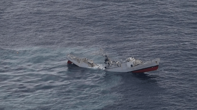 In a test-firing in mid-December, an unnamed French nuclear-powered attack submarine launched an F21 heavyweight torpedo at the retired corvette Premier Maitre L'Her. Images released by the Marine Nationale show that the torpedo hit just aft of the deckhouse and broke the ship's keel, as designed.