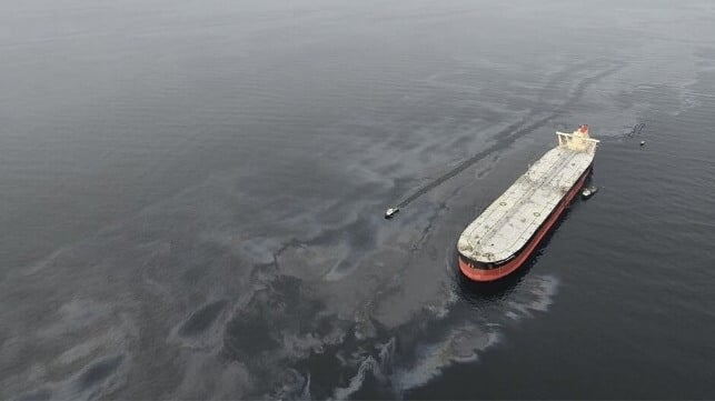 Supertanker Disconnects from Pipeline in Storm Causing Oil Slick