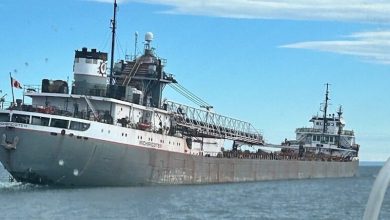 The Canadian-flagged M/V Michipicoten, a 689-foot bulk carrier carrying taconite, was safely escorted to Thunder Bay, Ontario, after experiencing significant…